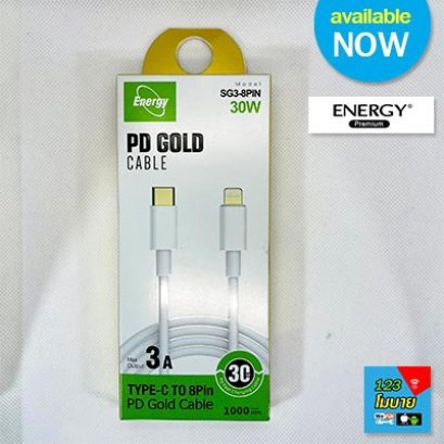 Premium USB-C to Lightning เป็น USB-C 30W สำหรับ iPhone ( PD Cable ) คุณภาพดีจากค่าย Energy ของแท้ 100% ปลอดภัย Good quality type c charging cable from Energy. Lightning เป็น USB C 30W สำหรับ iPhone