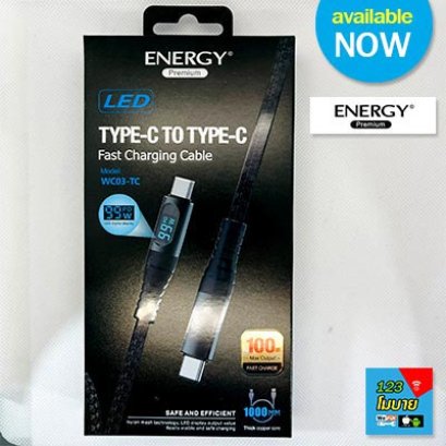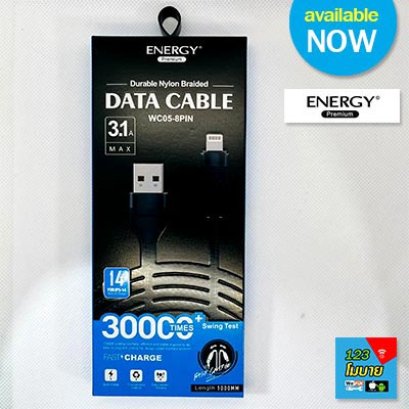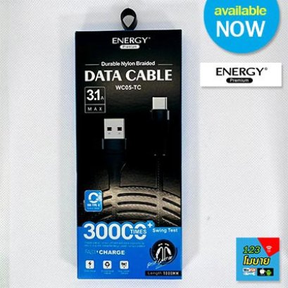 Premium USB to Type-C 3.1A Charge. Fast Charge. Durable Nylon Braided. คุณภาพดีจากค่าย Energy ของแท้ 100% ปลอดภัย Good quality type c charging cable from Energy.