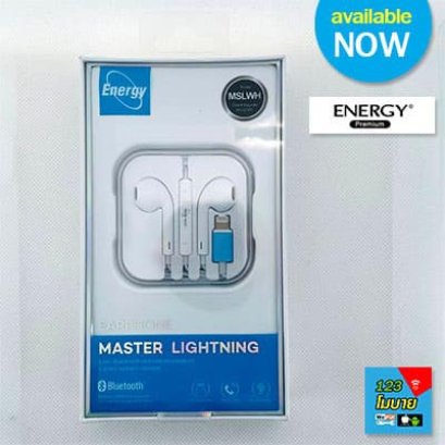 Earphone Master Lightning For iPhone ระบบสัมผัส เสียงคมชัด เชื่อมต่ออัตโนมัติ คุณภาพดีจากค่าย Energy ของแท้ 100% ปลอดภัย Wireless headphones, sound quality control system, clear. ความยาว 120cm